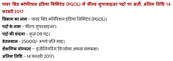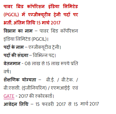 PGCIL Recruitment _ पावर ग्रिड कॉर्पोरेशन इंडिया लिमिटेड में विभिन्_न पदों पर भर्ती, अंतिम तिथि 15 मार्च 2017 Notification And Online Application Notification And Online Application Share this: Share on X (Opens in new window) X Share on Facebook (Opens in new window) Facebook Like Loading... Related