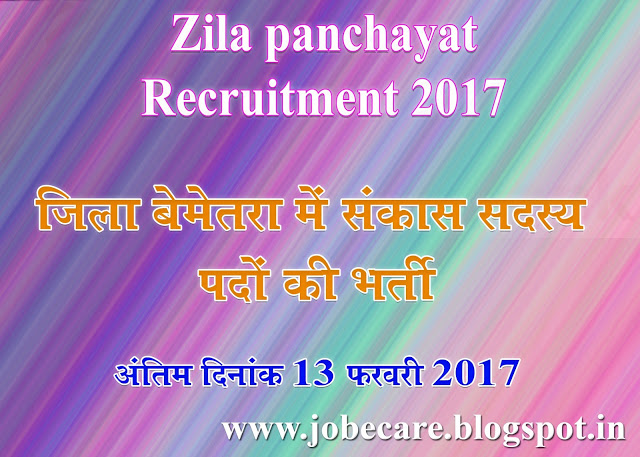Zila Panchayat Recruitment : जिला पंचायत बेमेतरा में संकाय सदस्य (Faculty Member) पदों की भर्ती, अंतिम तिथि 13 फरवरी 2017 \ Full Notification And Application Form Share this: Share on X (Opens in new window) X Share on Facebook (Opens in new window) Facebook Like Loading... Related