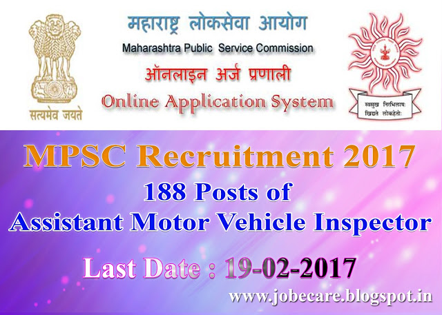 MPSC (Maharashtra Public Service Commission) released notification to fill up for post of Assistant Motor Vehicle Inspector.