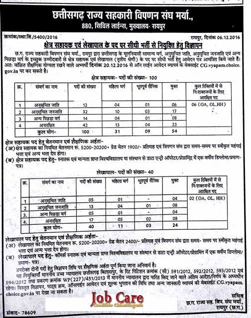 नेशनल हैंडलूम डेवलपमेंट कारपोरेशन में उक्त पदों पर उम्मीदवार वेबसाइट के माध्यम से 30 दिसम्बर 2016 तक आवेदन कर सकते हैं। अन्य किसी भी जानकारी के लिए विभाग द्वारा जारी अधिसूचना देखें।