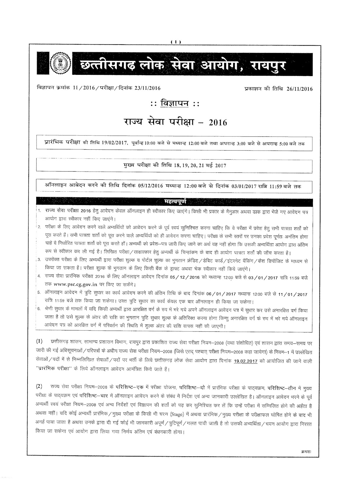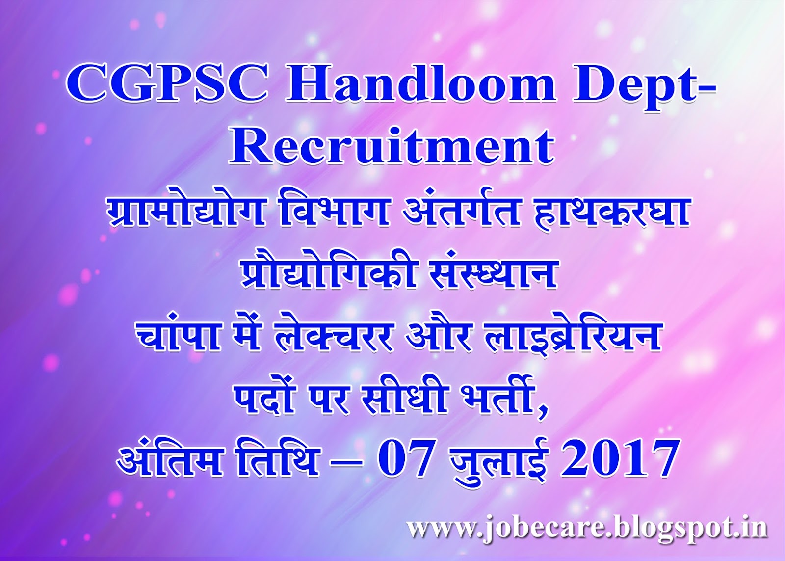सभी उम्मीदवारों से अनुरोध है कि वे उपयुक्त पद के लिए पात्रता संबधी निर्देशों का अवलोकन भली-भांति कर लें एवं किसी भी विज्ञापन पर आवेदन करने से पहले अपने समझ से काम लेवें। कृपया सटिक एवं अधिक जानकारी के लिए विभागीय नोटिफिकेशन या विज्ञापन देखें। किसी भी स्थिति में विभागीय विज्ञापन में दिये गये निर्देश ही सही माने जावेंगे।