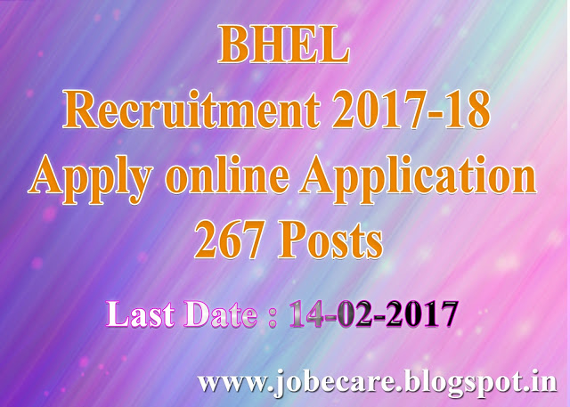 Bharat Heavy Electricals Limited hiring for the 267 posts of Trade Apprentices in Various Trades. Apply before 14th February 2017.