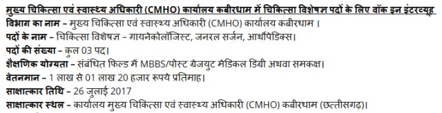 जिला पंचायत कबीरधाम में संकाय सदस्य पद की भर्ती हेतु रोजगार विज्ञापन प्रकाशित किया गया है। नोटिफिकेशन के अनुसार इन रोजगार पद के लिए दिनांक 16 अक्टूबर 2017 निर्धारित प्रारूप में आवेदन किया जा सकता है। इस भर्ती सूचना पर शैक्षिक योग्यता, वेतनमान, आयु सीमा और चयन प्रक्रिया जैसे विवरणों के बारे में जानने के लिए, विभाग द्वारा जारी आधिकारिक अधिसूचना नीचे दिये गये लिंक से डाउनलोड कर सकते हैं। यहां कुछ महत्वपूर्ण विवरण नीचे दिये जा रहें हैं।