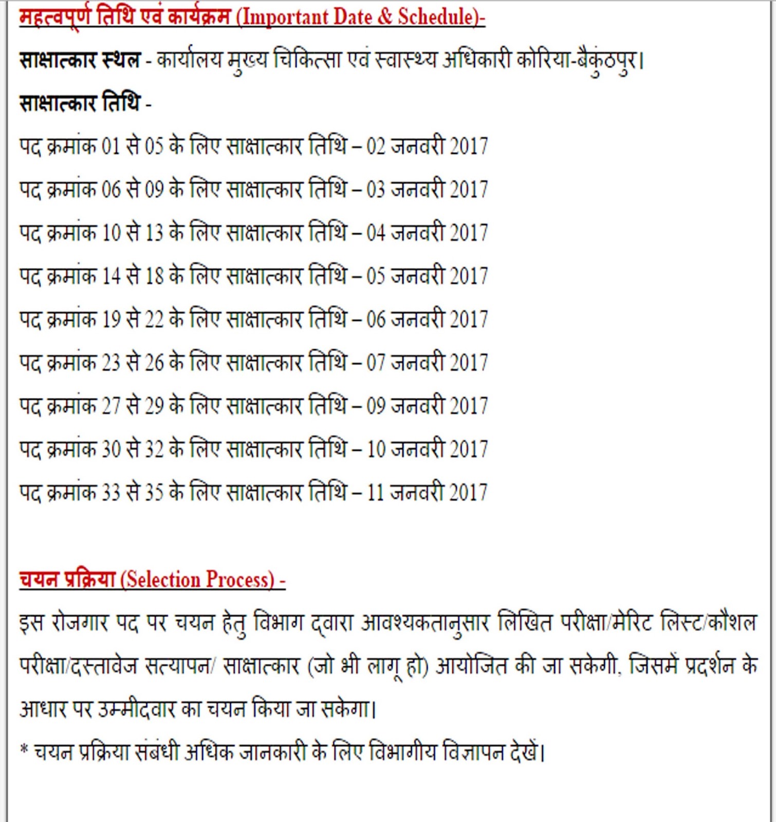 * चयन प्रक्रिया संबंधी अधिक जानकारी के लिए विभागीय विज्ञापन देखें।