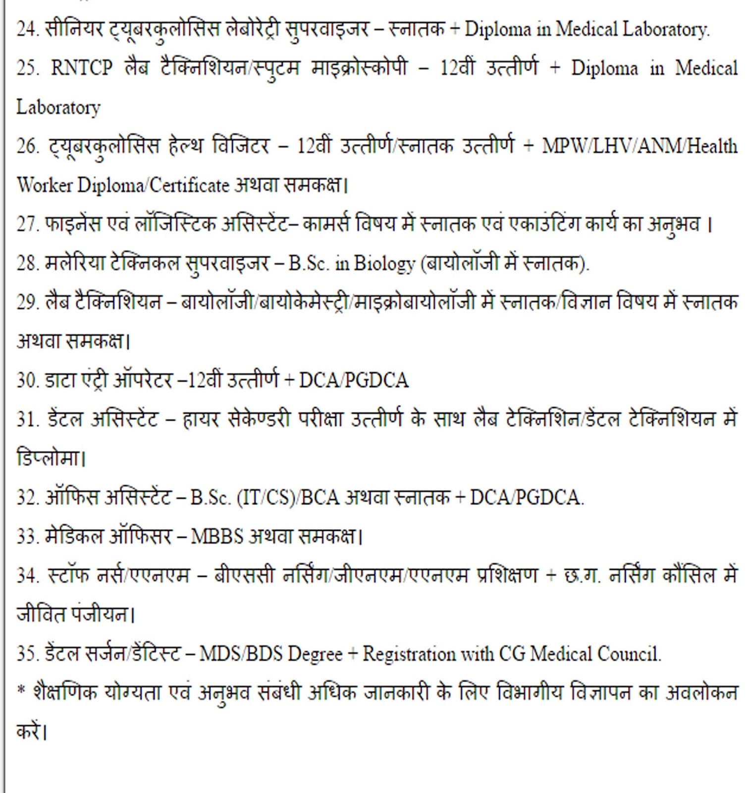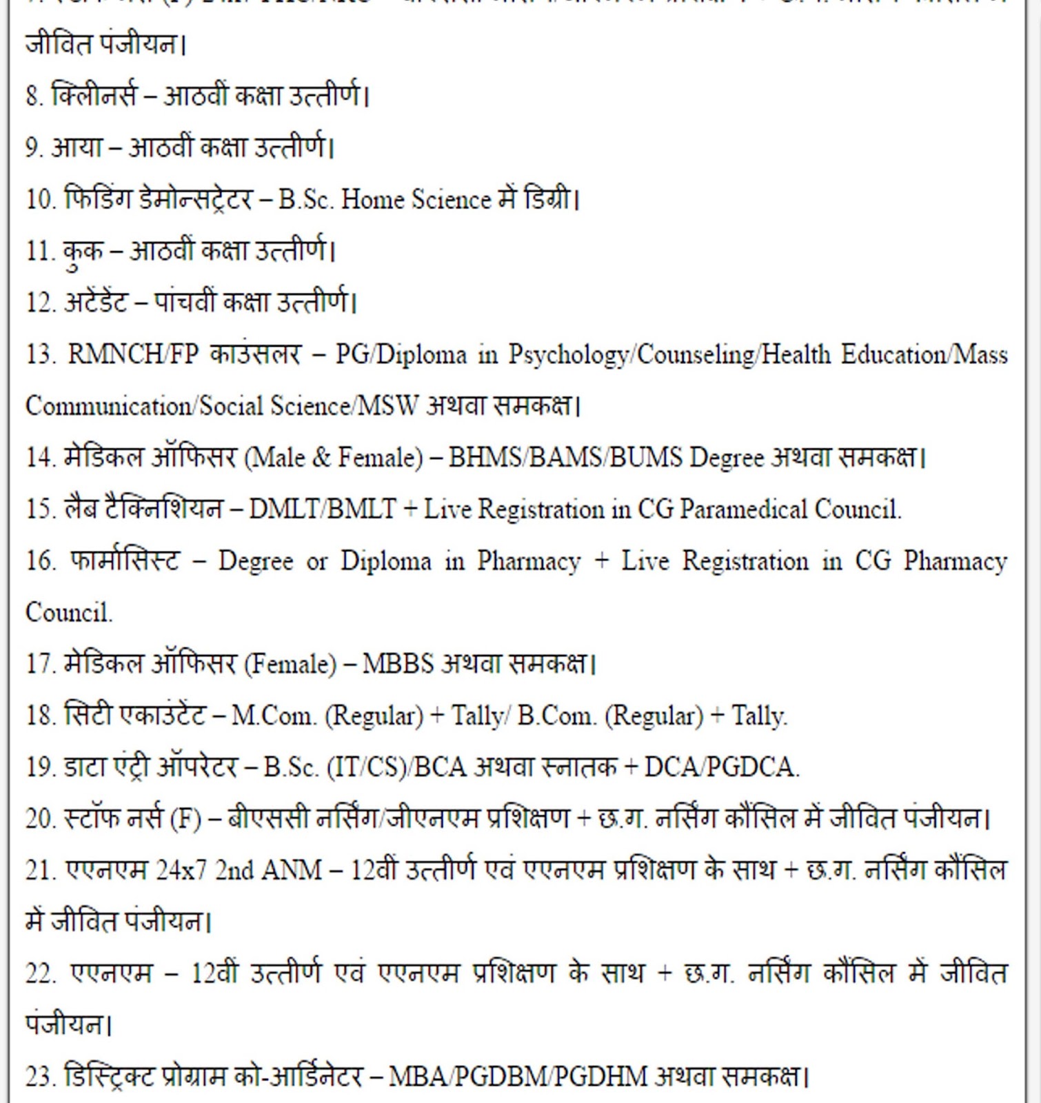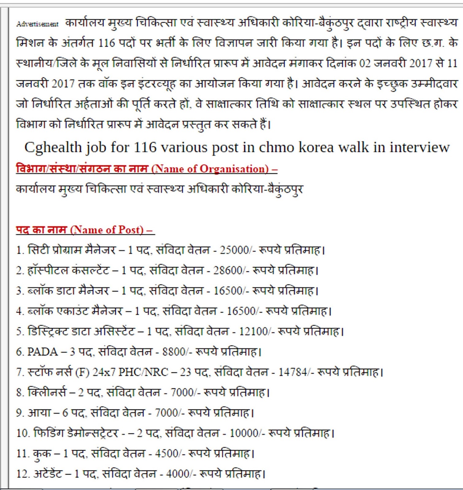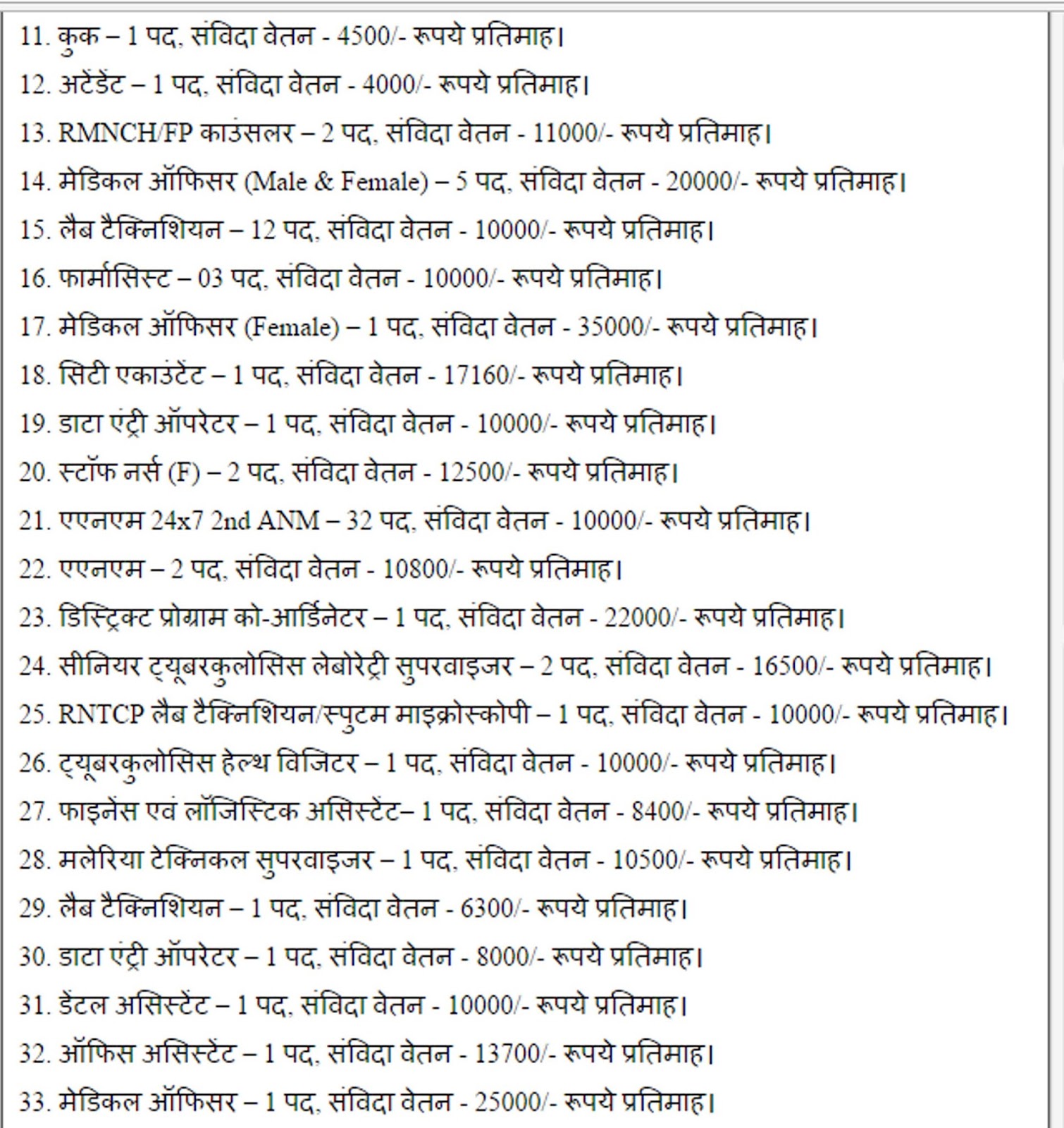 पद क्रमांक 1 से 3 – संविदा के अंतर्गत ।