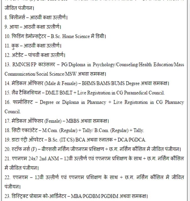 इस रोजगार सूचना पर आवेदन करने के लिए उम्मीदवार के पास 8वीं/12वीं उत्तीर्ण सर्टिफिकेट एवं कम्प्यूटर डिप्लोमा/स्नातक डिग्री एवं PMRDF में Fellow के रूप में अनुभव/राज्य शासन के समकक्ष पदों पर कार्यरत अधिकारी/कर्मचारी होना निर्धारित किया गया है।