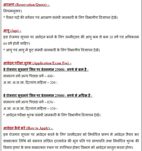*आवेदन करने संबंधी निर्देश, संलग्न किये जाने वाले दस्तावेजों की सूची एवं अन्य जानकारियों के लिए विभागीय विज्ञापन का अवलोकन करें।