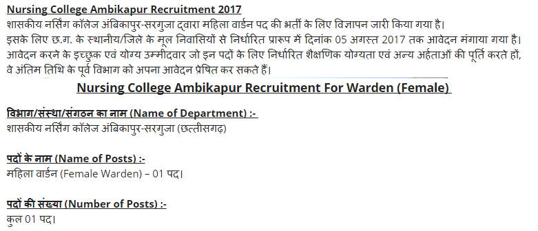 सभी उम्मीदवारों से अनुरोध है कि वे उपयुक्त पद के लिए पात्रता संबधी निर्देशों का अवलोकन भली-भांति कर लें एवं किसी भी विज्ञापन पर आवेदन करने से पहले अपने समझ से काम लेवें। कृपया सटिक एवं अधिक जानकारी के लिए विभागीय नोटिफिकेशन या विज्ञापन देखें। किसी भी स्थिति में विभागीय विज्ञापन में दिये गये निर्देश ही सही माने जावेंगे।