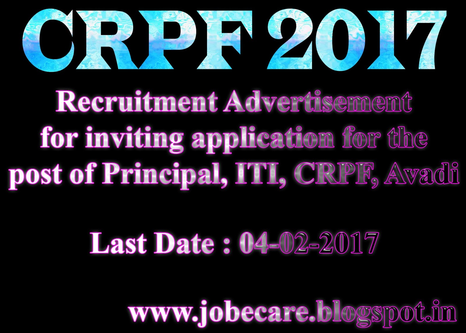 CRPF Recruitment Advertisement for inviting application for the post of Principal, ITI, CRPF, Avadi Last Date 04/02/20147