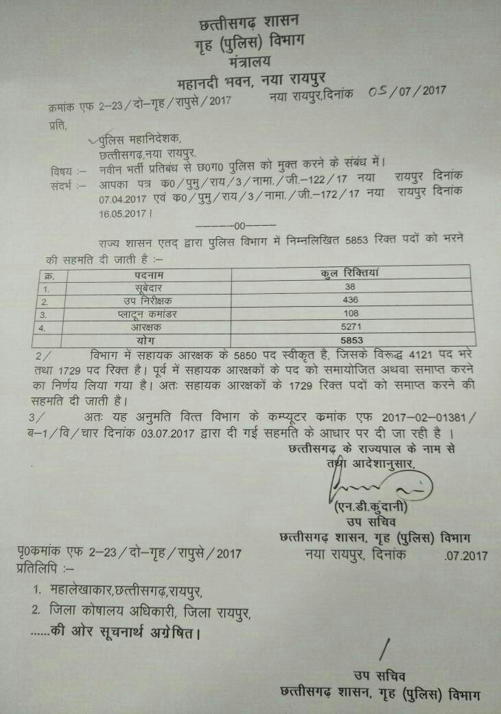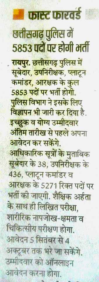 Chhattisgarh Police Recruitment 2017– छ.ग. पुलिस विभाग में सूबेदार, उपनिरीक्षक, प्लाटून कमांडर और आरक्षक पदों पर भर्ती अधिसूचना, 05 सितम्बर 2017 से प्रारंभ होगी आवेदन प्रक्रिया