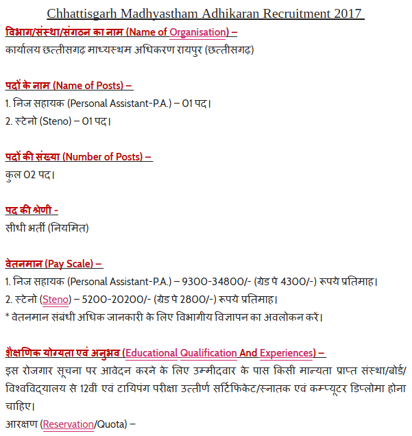 * इस रोजगार पद पर आवेदन करने संबंधी अधिक जानकारी के लिए विभागीय विज्ञापन का अनुसरण करें।