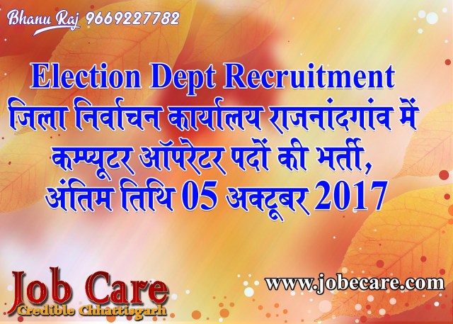 Election Dept Recruitment – जिला निर्वाचन कार्यालय राजनांदगांव में कम्‍प्‍यूटर ऑपरेटर पदों की भर्ती, अंतिम तिथि 05 अक्‍टूबर 2017