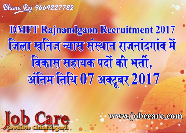DMFT Rajnandgaon Recruitment 2017 – जिला खनिज न्‍यास संस्‍थान राजनांदगांव में विकास सहायक पदों की भर्ती, अंतिम तिथि 07 अक्‍टूबर 2017