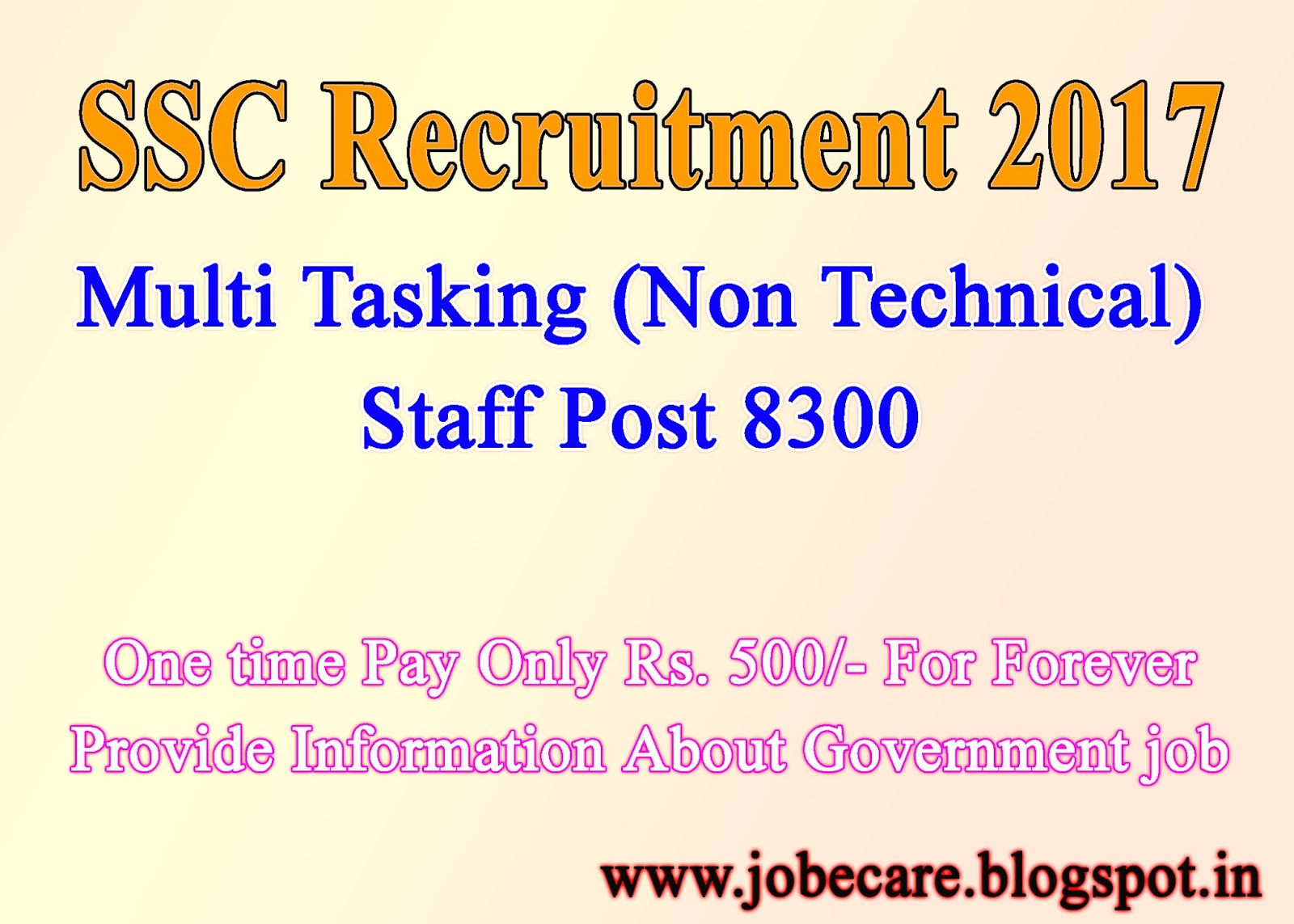 SSC Recruitment 2017-Multi Tasking (Non Technical) Staff Post 8300 Last Date 30/01/2016