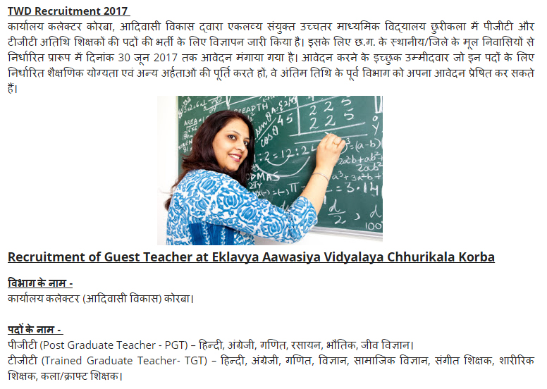 सभी उम्मीदवारों से अनुरोध है कि वे उपयुक्त पद के लिए पात्रता संबधी निर्देशों का अवलोकन भली-भांति कर लें एवं किसी भी विज्ञापन पर आवेदन करने से पहले अपने समझ से काम लेवें। कृपया सटिक एवं अधिक जानकारी के लिए विभागीय नोटिफिकेशन या विज्ञापन देखें। किसी भी स्थिति में विभागीय विज्ञापन में दिये गये निर्देश ही सही माने जावेंगे।
