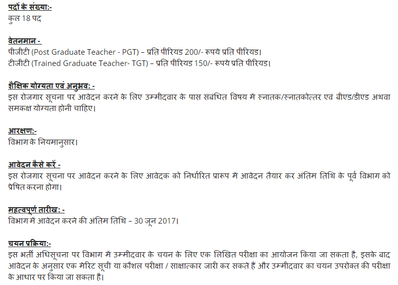 आवेदन प्रक्रिया – इस रोजगार सूचना पर आवेदन करने के लिए उम्मीदवार निर्धारित प्रारूप में आवेदन तैयार कर अंतिम तिथि तक विभाग को आवेदन प्रस्तुत करना होगा।