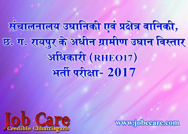 संचालनालय उघानिकी एवं प्रक्षेत्र वानिकी, छ. ग. रायपुर के अधीन ग्रामीण उघान विस्तार अधिकारी (RHEO17) भर्ती परीक्षा- 2017